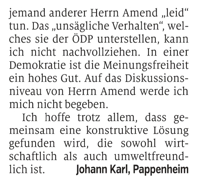 Und hier noch zwei weitere Leserbriefe zum Thema, einer vom Vertreter des Bürgerbegehrens Reinhard Ebert und …